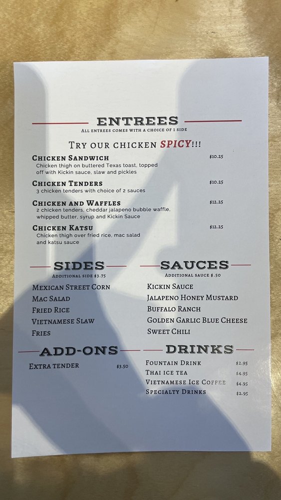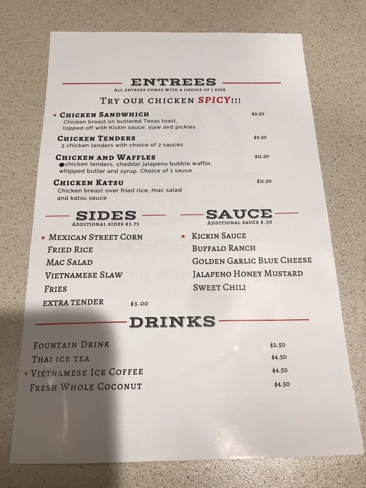The vibe at Kickin Chicken is casual, complemented by friendly service and a welcoming atmosphere. Despite parking challenges, regulars like Ethan W. and Alison F. assure you the delicious food makes it all worthwhile. If you're in the area, this spot is a must-visit for chicken enthusiasts!